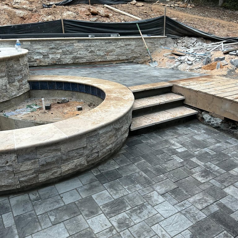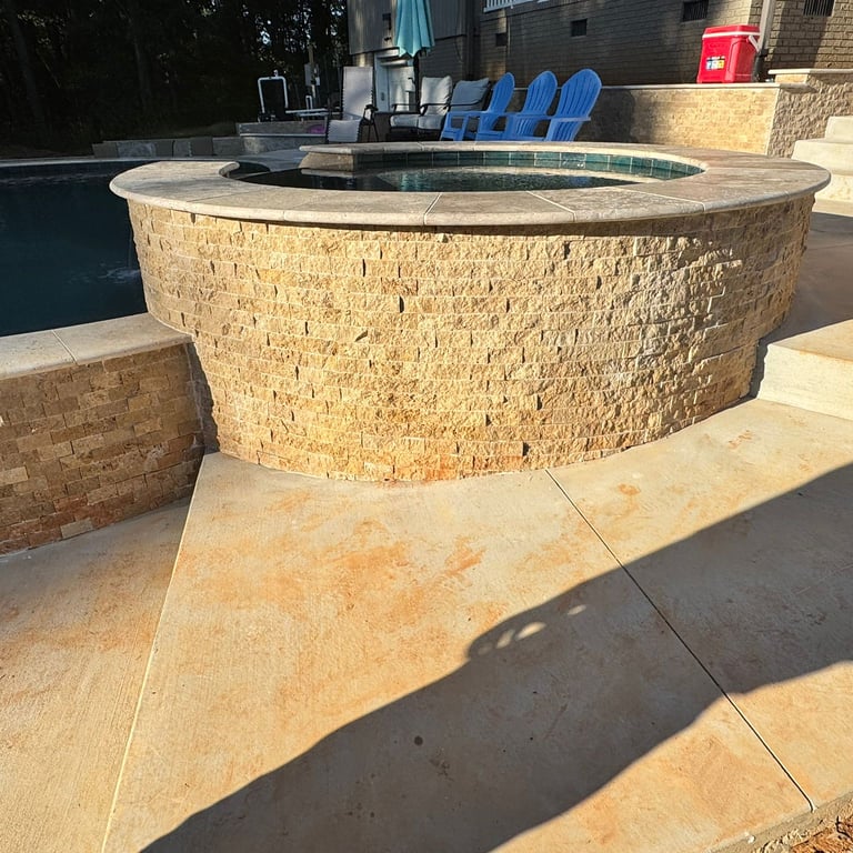 Pools with Integrated Spas: See innovative designs that combine a beautiful swimming pool with a therapeutic, custom-tiled spa, ensuring year-round enjoyment and relaxation.