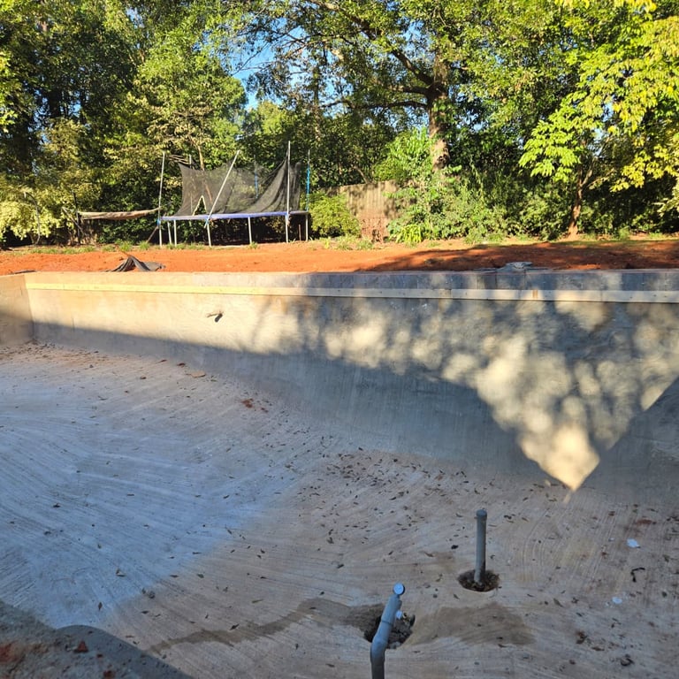 Custom Patios & Decking: View various materials, including natural stone, pavers, and composite decking, used to create beautiful and functional pool surrounds and gathering spaces.